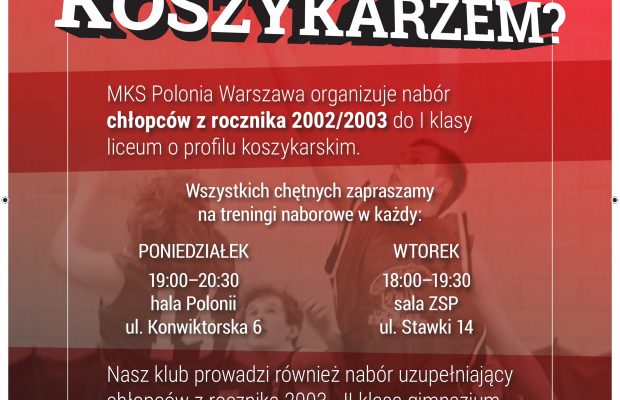 MKS Polonia warszawa ogłasza nabór do I klasy liceum o profilu koszykarskim. Szczegóły w ogłoszeniu.